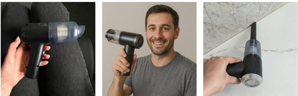 The Dustaclean Handheld Vacuum is a portable, lightweight, and cordless vacuum cleaner designed to make cleaning small spaces easier and faster. With the growing need for convenient cleaning solutions, these vacuum claims to combine strong suction power, easy handling, and efficiency — perfect for cars, furniture, pet hair, and hard-to-reach corners in your home.